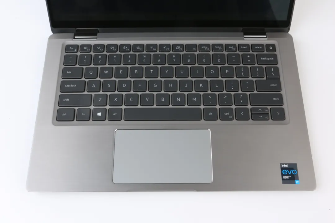 Latitude 7320二合一笔记本的C面由铝合金一体成型而来,它的键盘的每一个键位也是单独开孔而来,这样的好处是保证了C面结构的坚固性。这台机器的键盘采用全尺寸键帽设计,拥有单色背光,实际体验下来键程非常明显,给人的感觉是键程很长,同时回弹力度也比较大,输入体验舒适。另外,电源键也整合在键盘区域,提升了C面的整体性,而且开机键的阻尼更大,日常使用中不会和旁边的Delete键混淆。